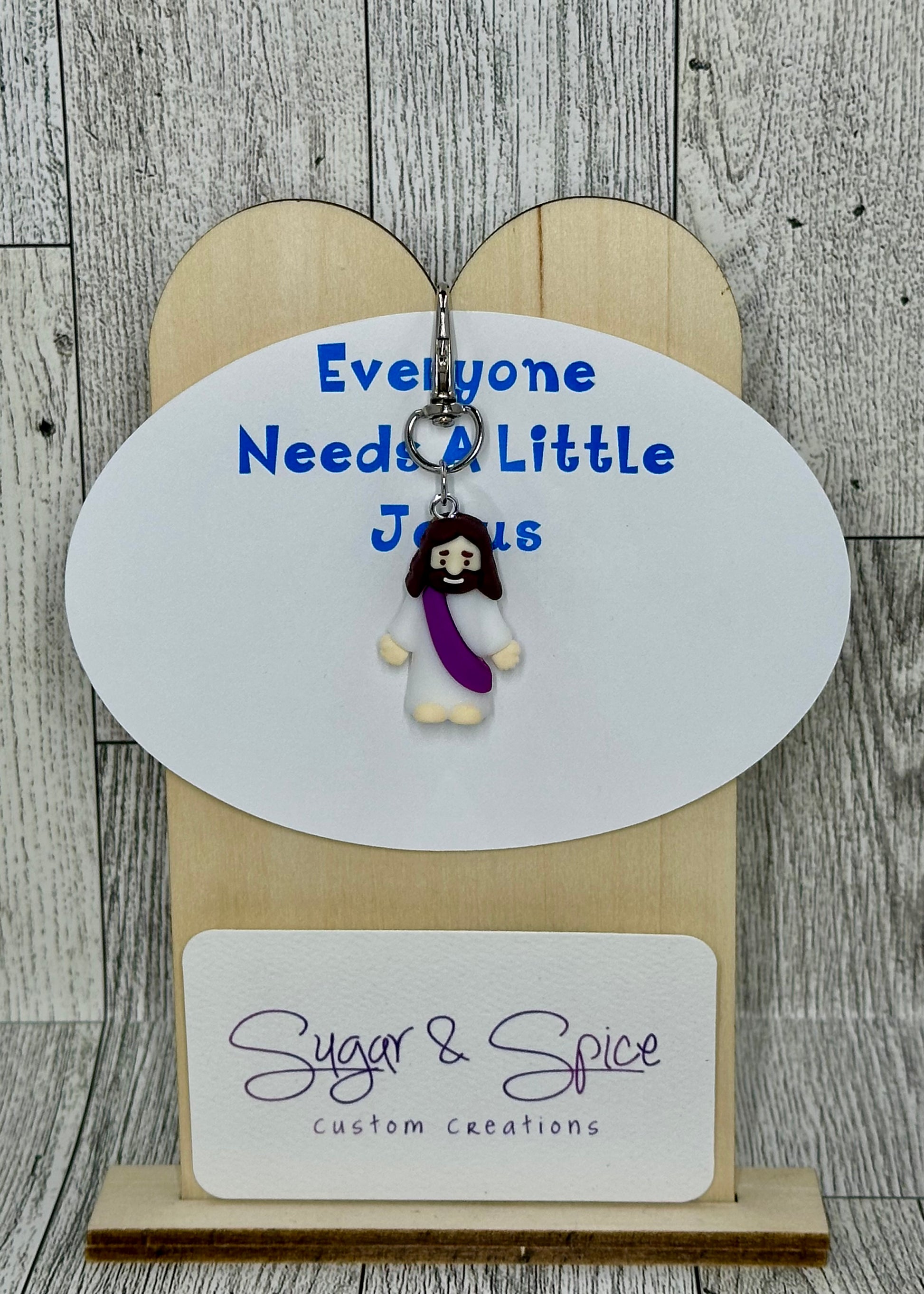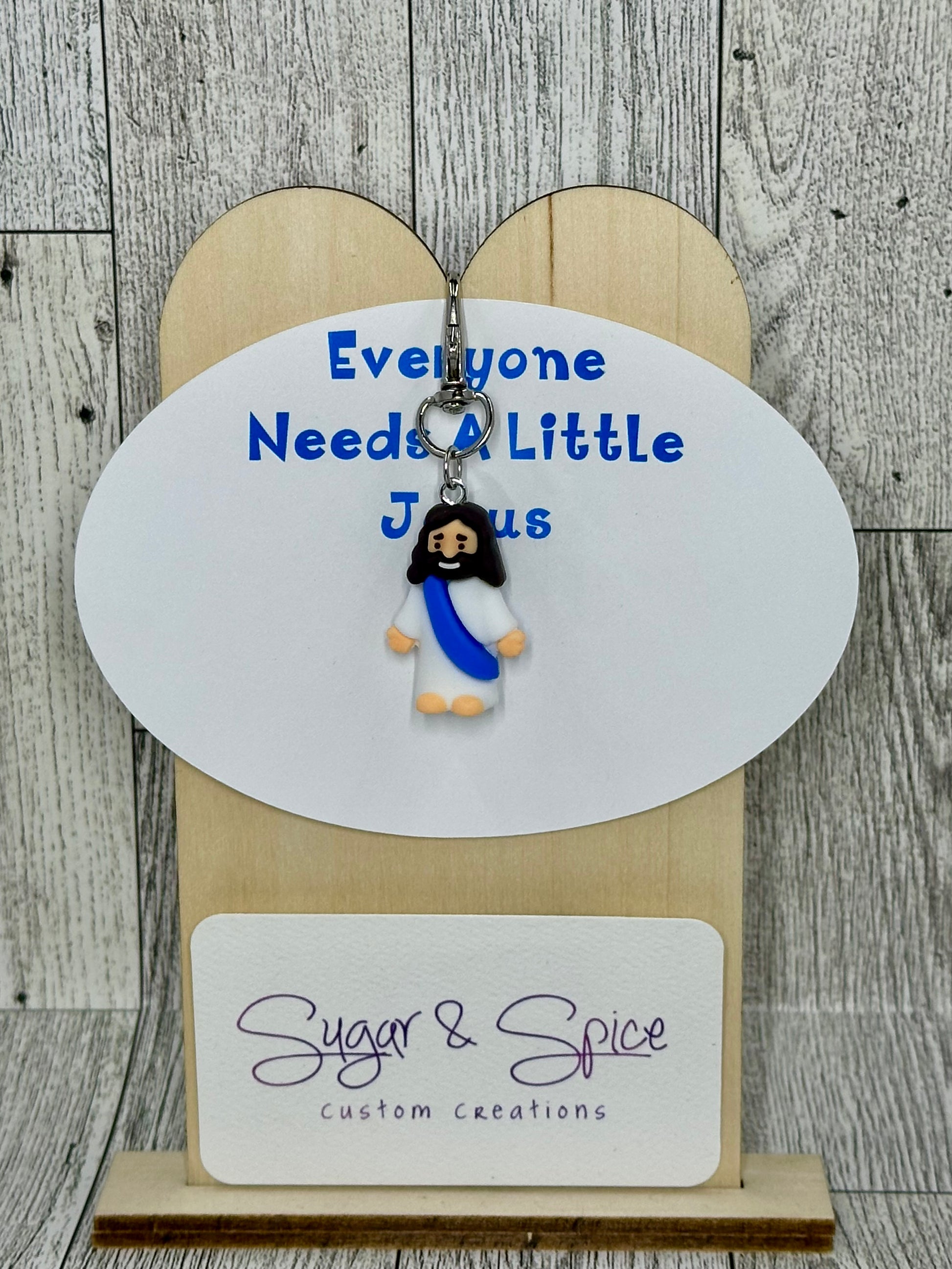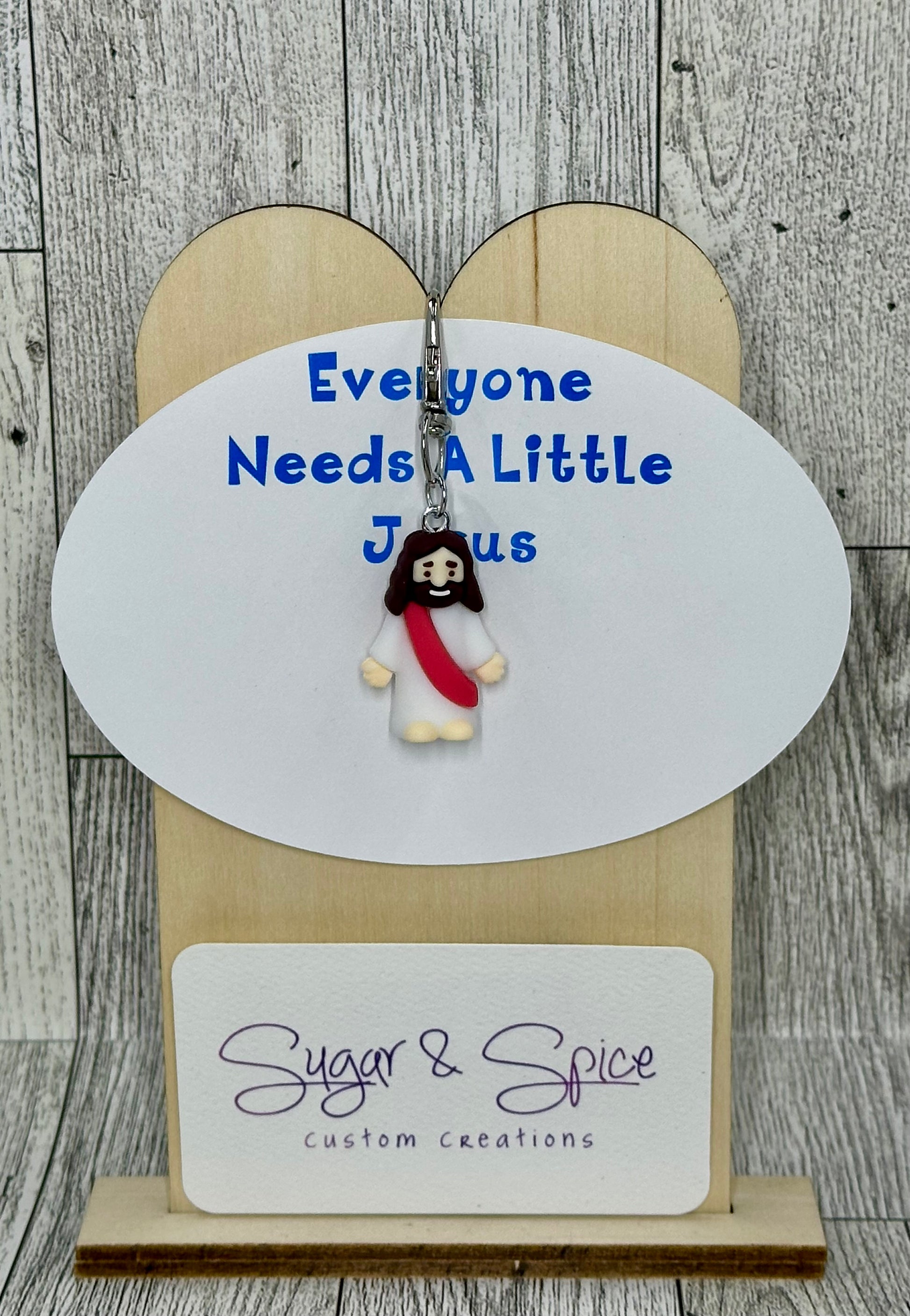 Add a touch of faith and elegance to your belongings with our Silver Jesus Zipper Pull. Made of strong iron alloy, this keychain not only guarantees long-lasting durability but also features a PVC Jesus symbol and is secured with E6000 glue. Hook it to your coat or jacket for a constant reminder of faith and hope.